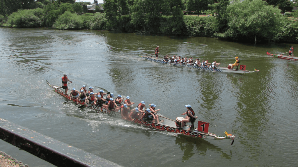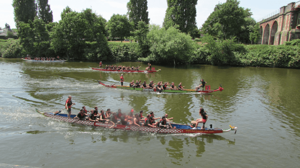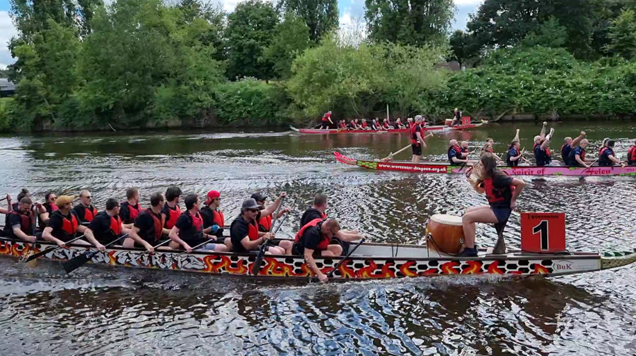 Race the Dragon is a charity event, hosted by Worcester Dragon Boat Racing Club. It has been held annually, except for the “covid years”, for over 25 years right in the heart of Worcester on the River Severn. Up to 30 teams enter each year to compete for Open, Women’s, Mixed and Under 18 trophies, raising thousands of pounds for charity. With parking and the City centre both in easy walking distance, Race the Dragon is a family friendly event that is fun to watch and to be part of. Come along to support teams and cheer them on as they race throughout the day.