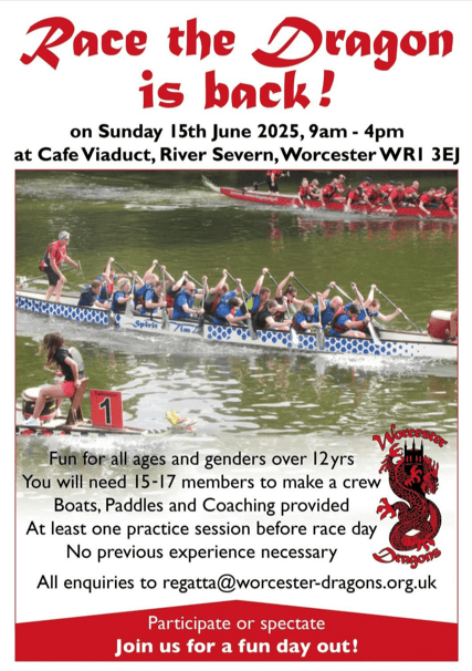 You’ve read it here first. RTD is returning on the 27th June 2026. For further information and a Race Entry Form, please contact regatta@worcester-dragons.org.uk